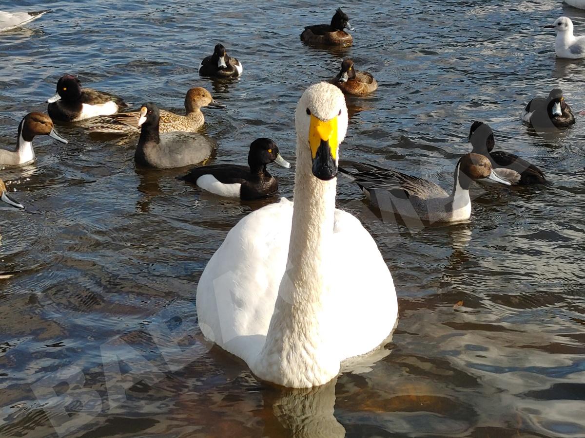 (たぶん)毎年渡ってくる常連の白鳥は、人に慣れていて、