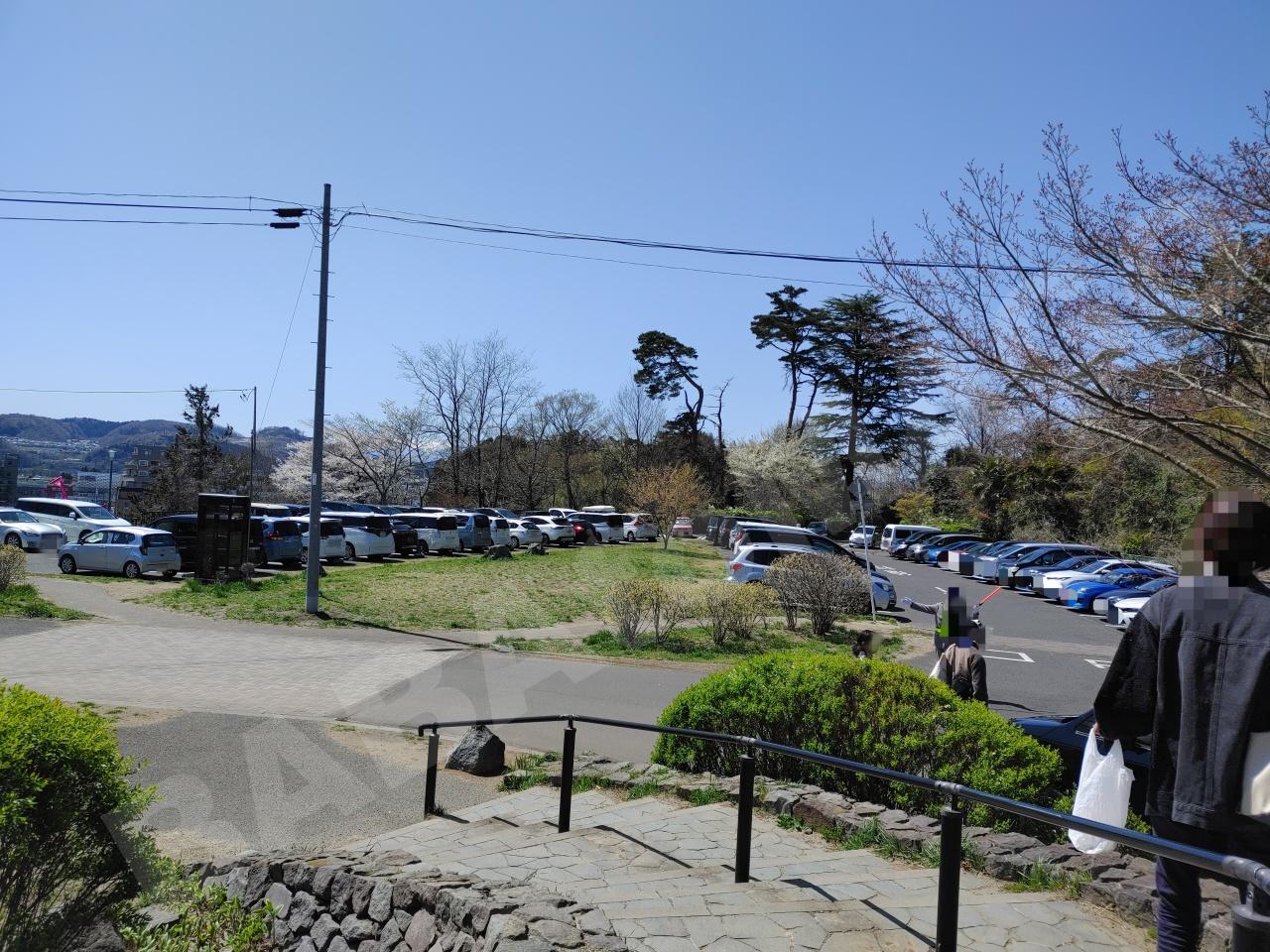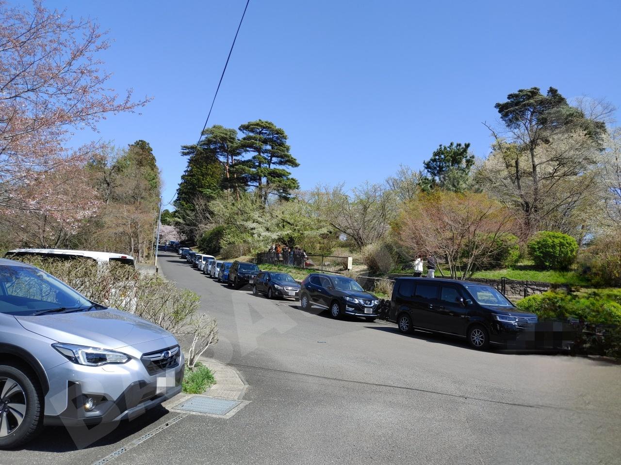 ただ、第1駐車場から第2駐車場(上にある駐車場)へ続く坂道に、たくさんの車を縦列駐車させていたので、ざっと見たところ、さくらまつりの時は100台以上は駐車できると思われます。