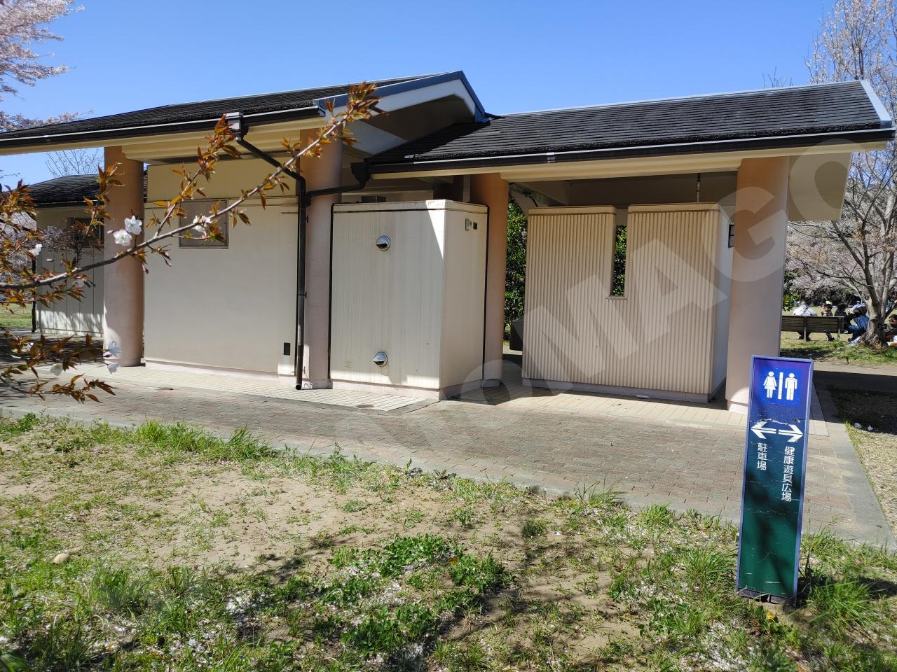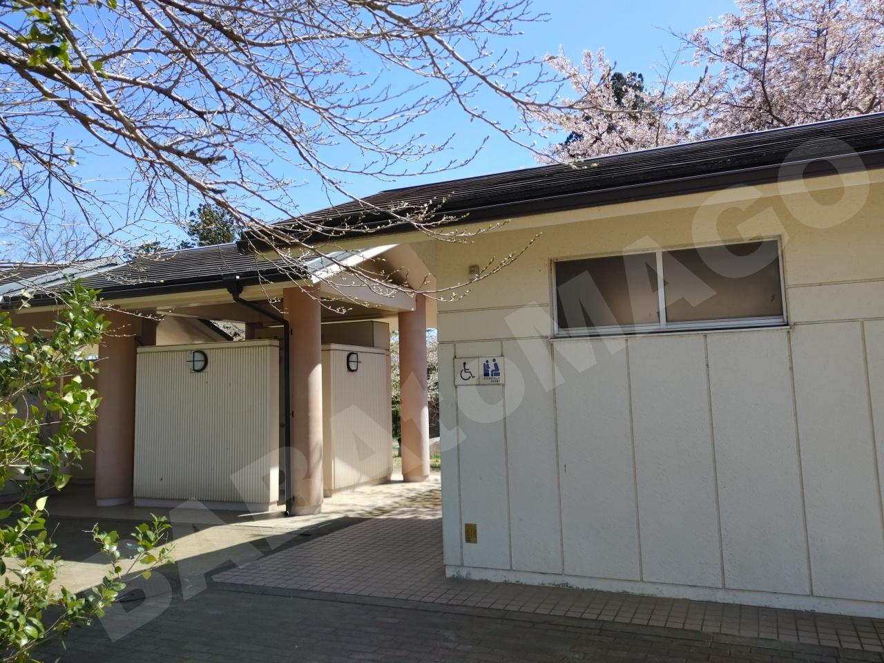 芝生の広場の南側(管理事務所の東側)にあるトイレです。